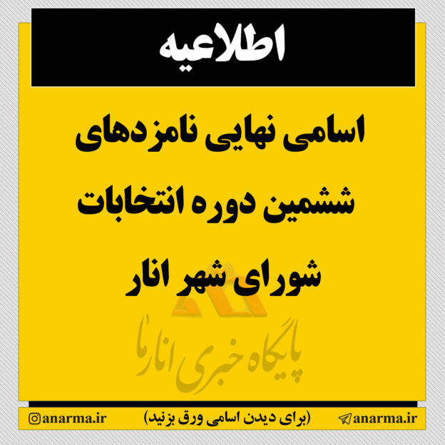 اسامی نهایی نامزدهای ششمین دوره انتخابات شورای اسلامی شهر انار اعلام شد